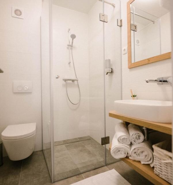 - Kupaonica s walk-in tušem, umivaonikom i WC školjkom